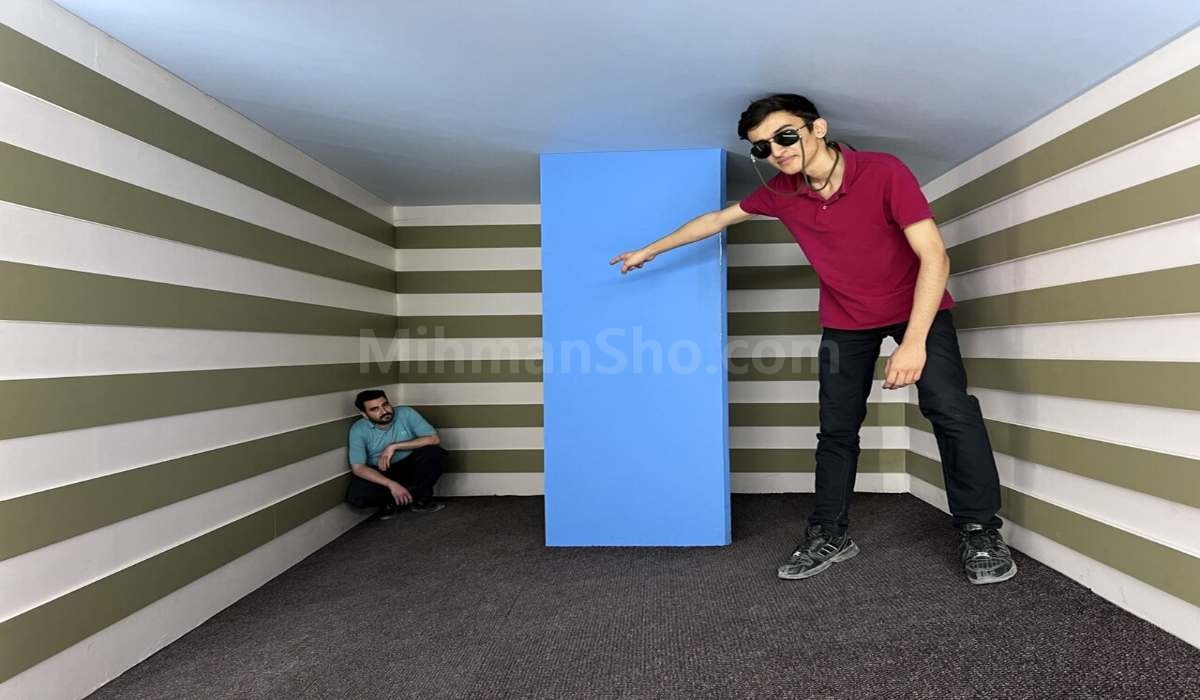 در این قسمت، حس تعادل شما به چالش کشیده میشود. کفها و دیوارها با زاویههای غیرمعمول ساخته شدهاند و بعضی فضاها بهصورت وارونه طراحی شدهاند تا این تصور ایجاد شود که روی سقف راه میروید یا در حال سقوط هستید. این بخش یکی از هیجانانگیزترین قسمتهای پارک خطای دید در تهران است و معمولاً واکنشهای شگفتزدهکنندهای از بازدیدکنندگان میگیرد.