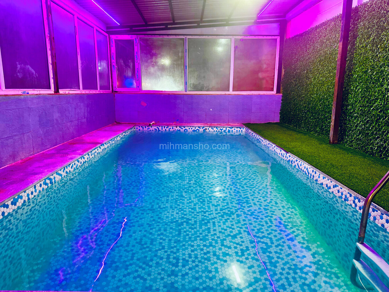 ویلا دارای استخر سرپوشیده با تصفیه اتوماتیک است.