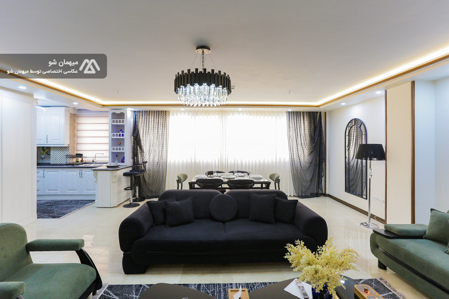 آپارتمان مبله دوخواب با متراژ 120 متر در طبقه چهارم یک ساختمان 5 طبقه در سعادت آباد واقع شده است.
