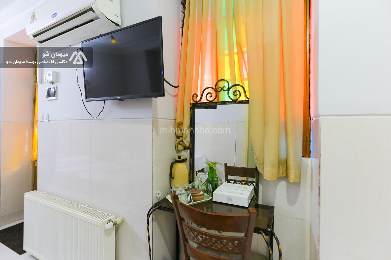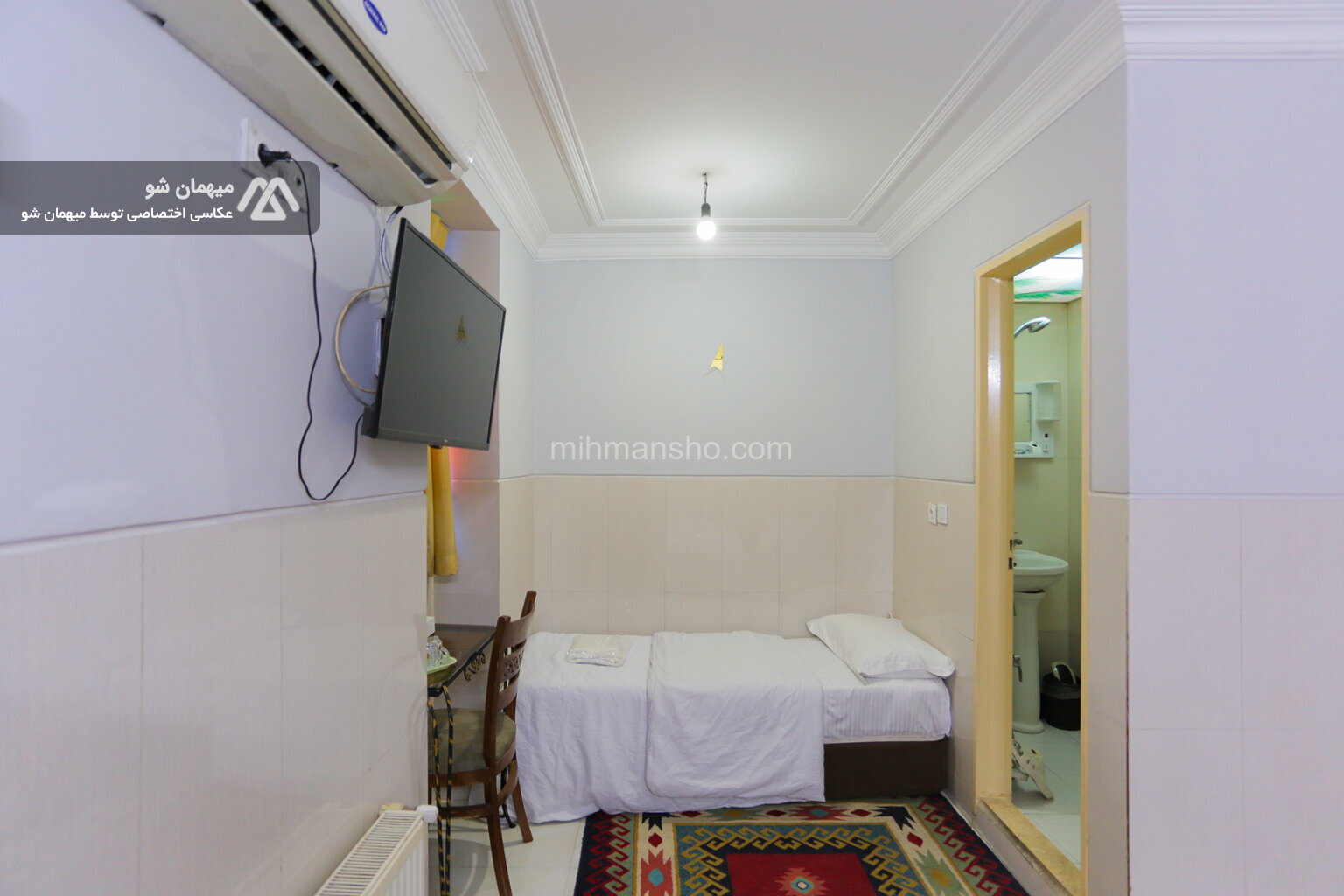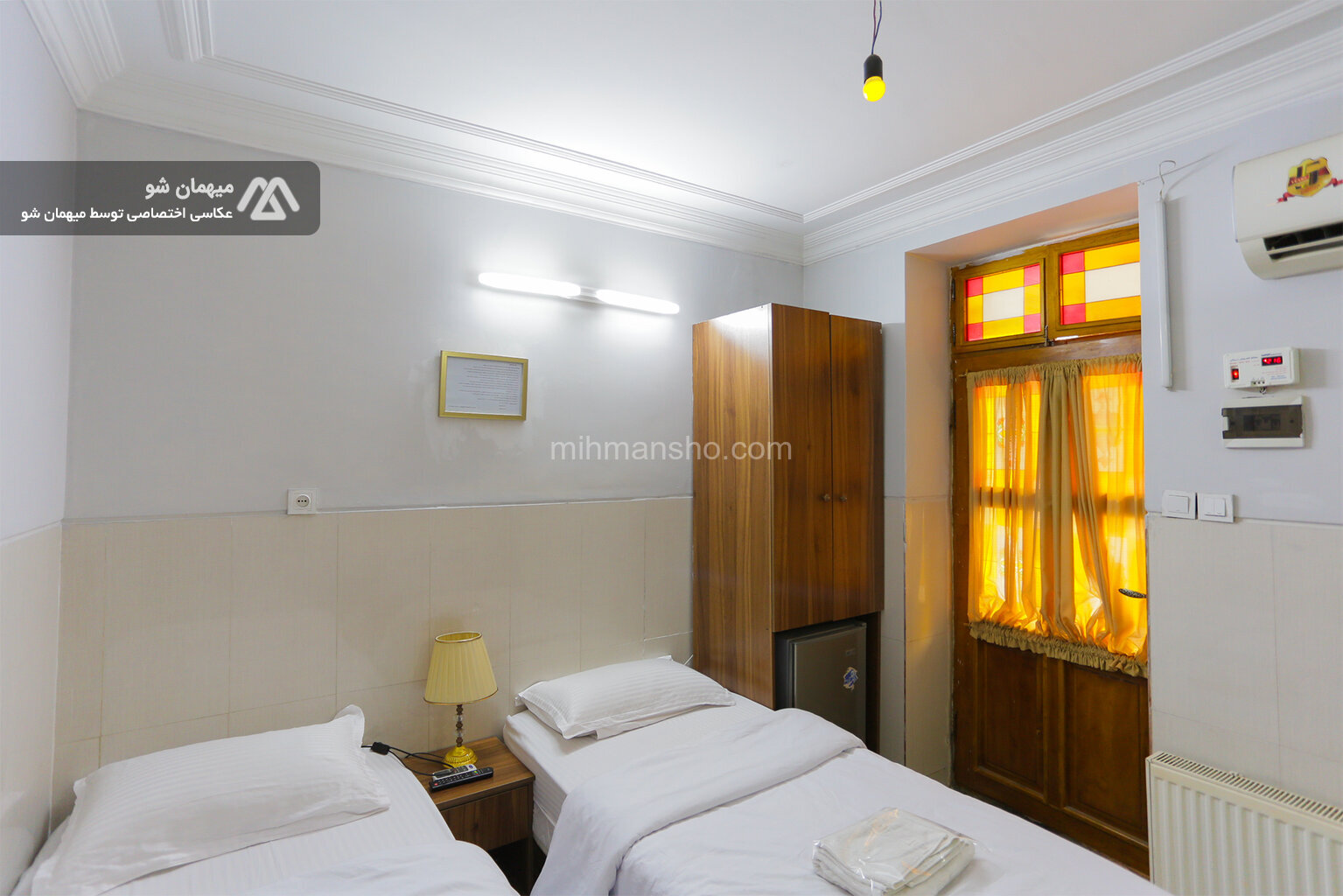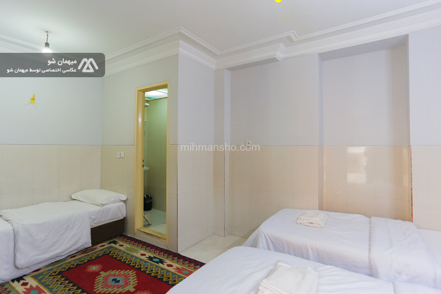 اتاق 3 نفره با متراژ 15 متر در طبقه اول هتل 2 طبقه در میدان راه آهن تهران واقع شده است.