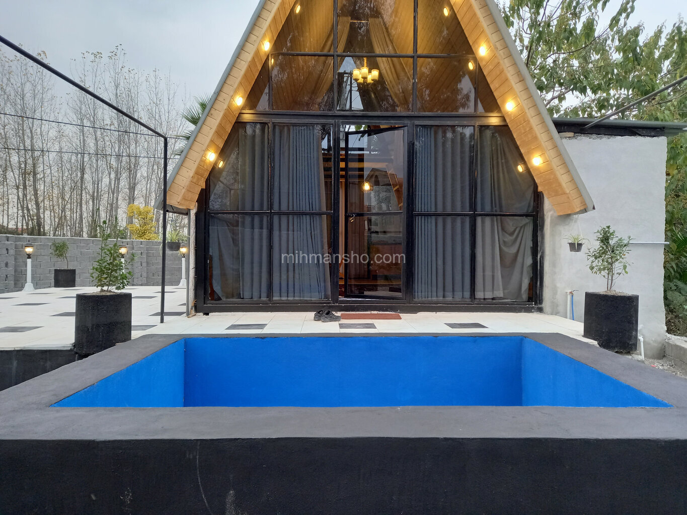 کلبه سوئیسی دوبلکس مبله تکخواب با متراژ 50 متر در زمینی به مساحت 500 متر در آمل واقع شده است.