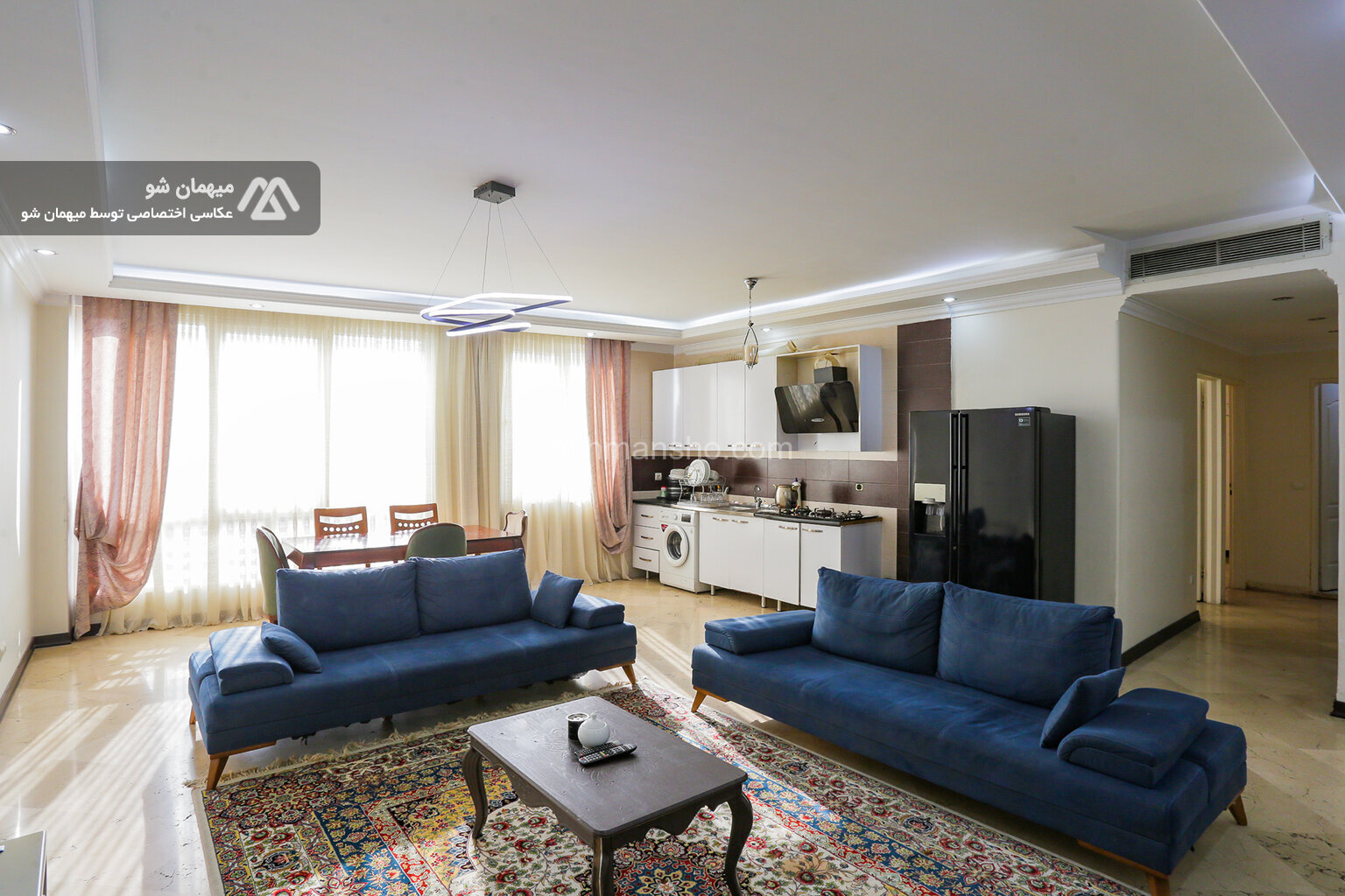 آپارتمان مبله تکخواب با متراژ 120 متر در طبقه سوم یک ساختمان 7 طبقه در خیابان ولیعصر واقع شده است.
