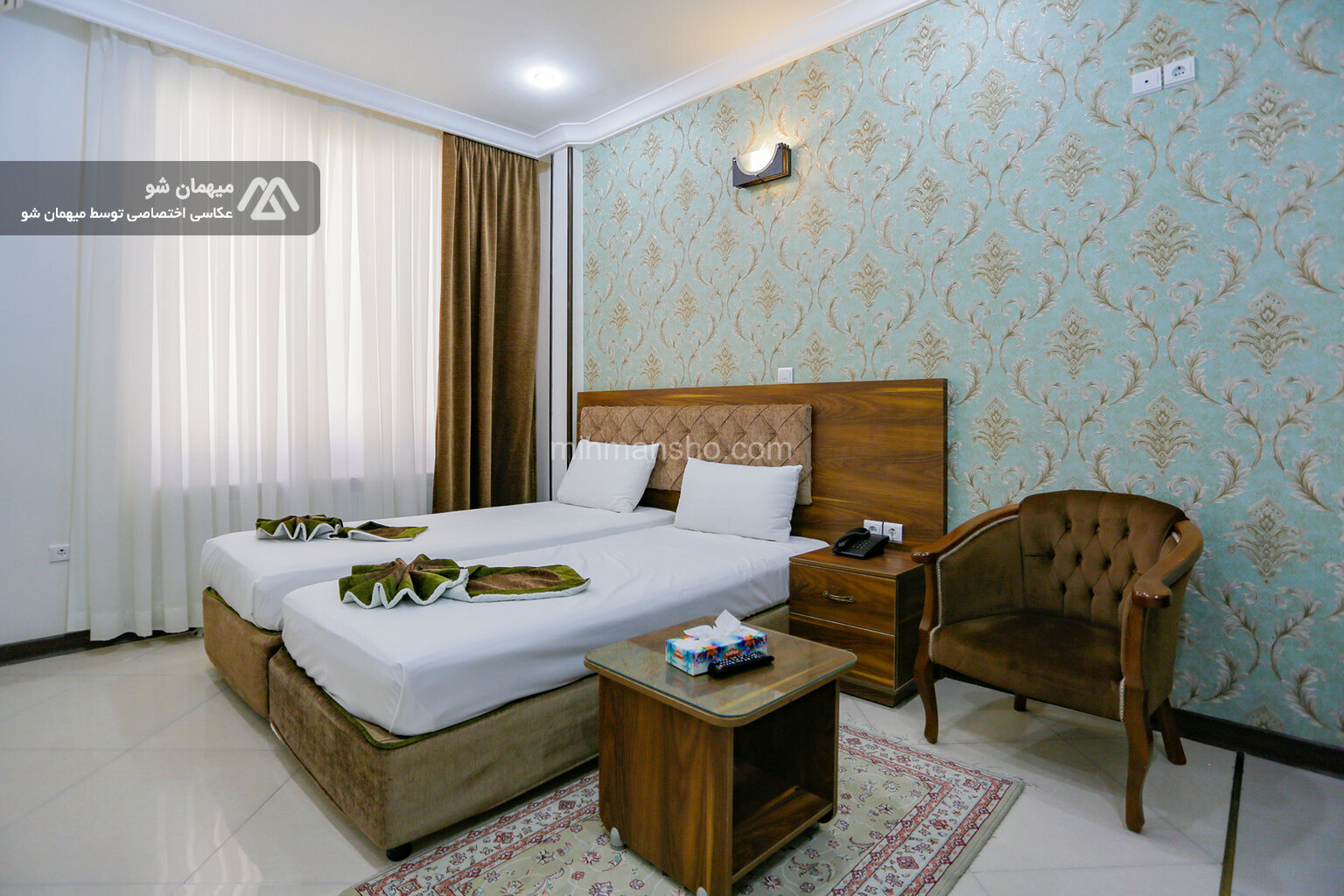 اتاق 45 متری 4نفره در هتل چهار طبقه با نما سنگ در مشهد واقع شده است.