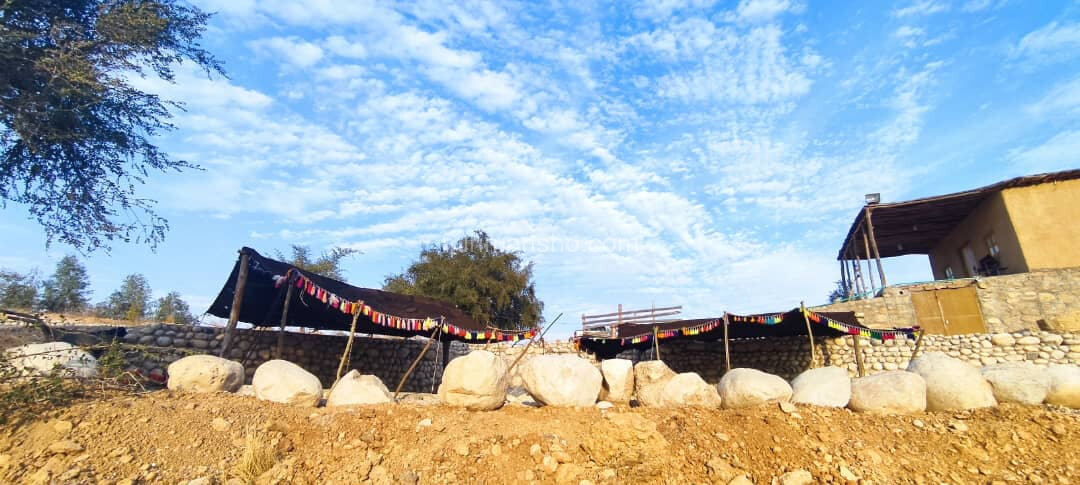 اتاق 7نفره در اقامتگاه بومگردی با نمای ظاهری کاهگل واقع در روستای طالقانی، روستایی از توابع بخش آبژدان شهرستان اندیکا در استان خوزستان می باشد.