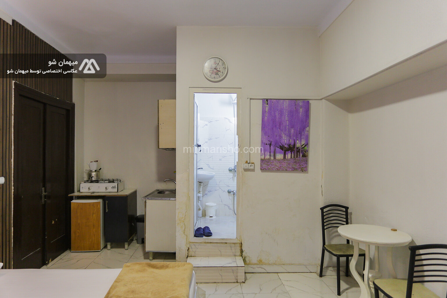 سوئیت 203 با متراژ 30 متر در طبقه اول مهمانپذیر دو طبقه بلوار کشاورز واقع شده است.