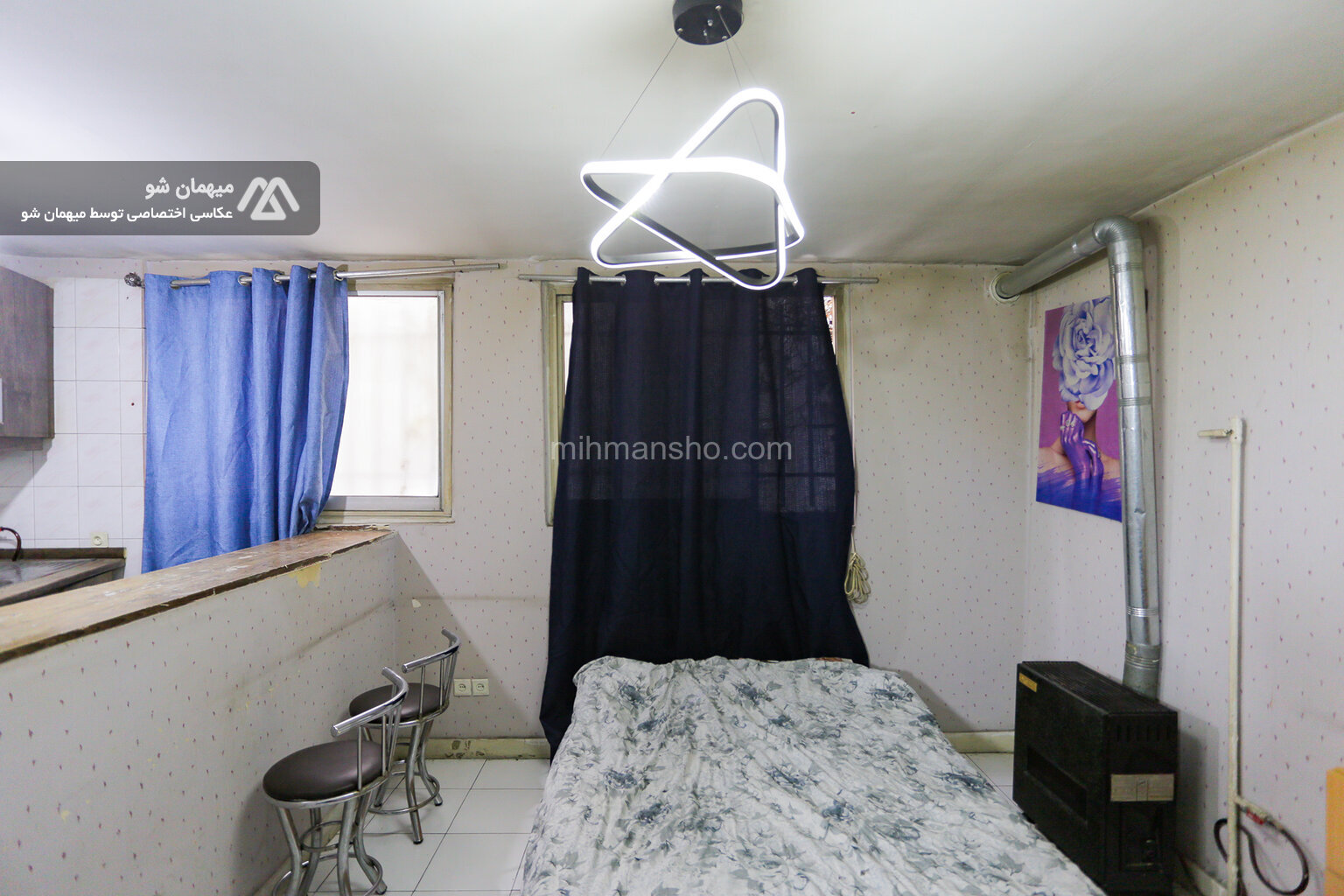 آپارتمان مبله تک خواب با متراژ 30 متر در طبقه همکف ساختمان 3 طبقه تک واحدی در بلوار کاوه تهران واقع شده است.