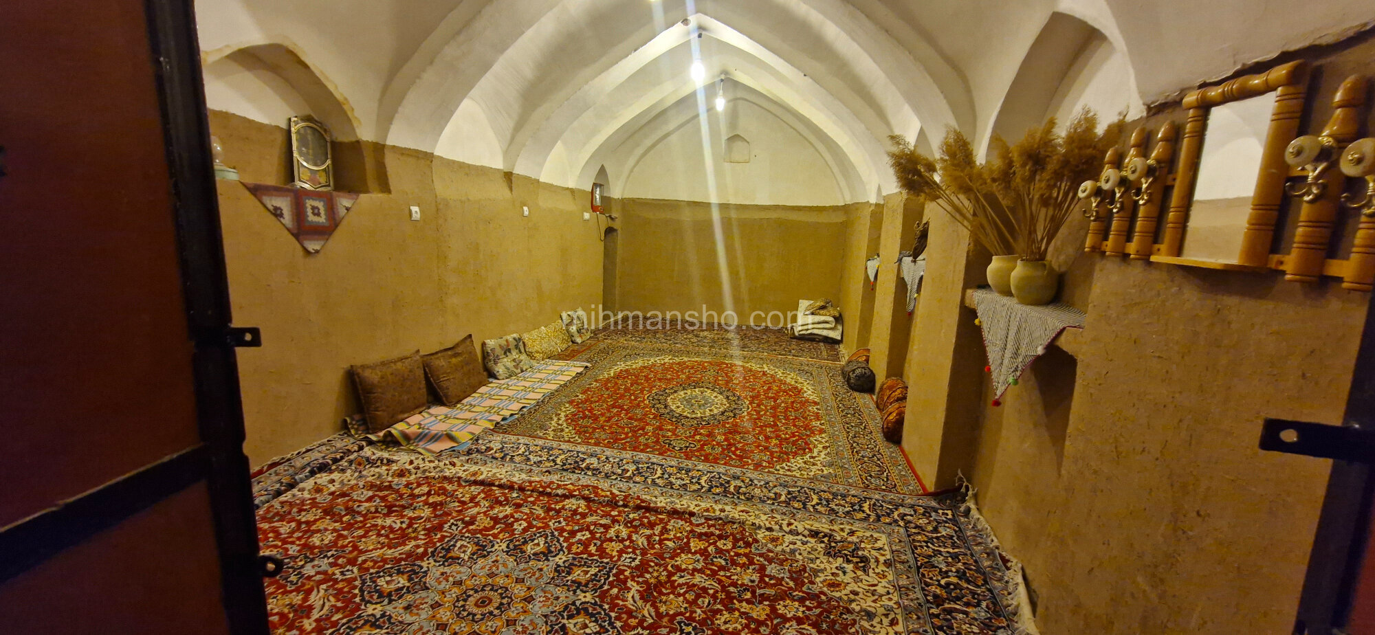 اتاق با متراژ 25 متر در زمینی به مساحت 550متر در بوم گردی روستای اسماعیلان نائین واقع شده است.