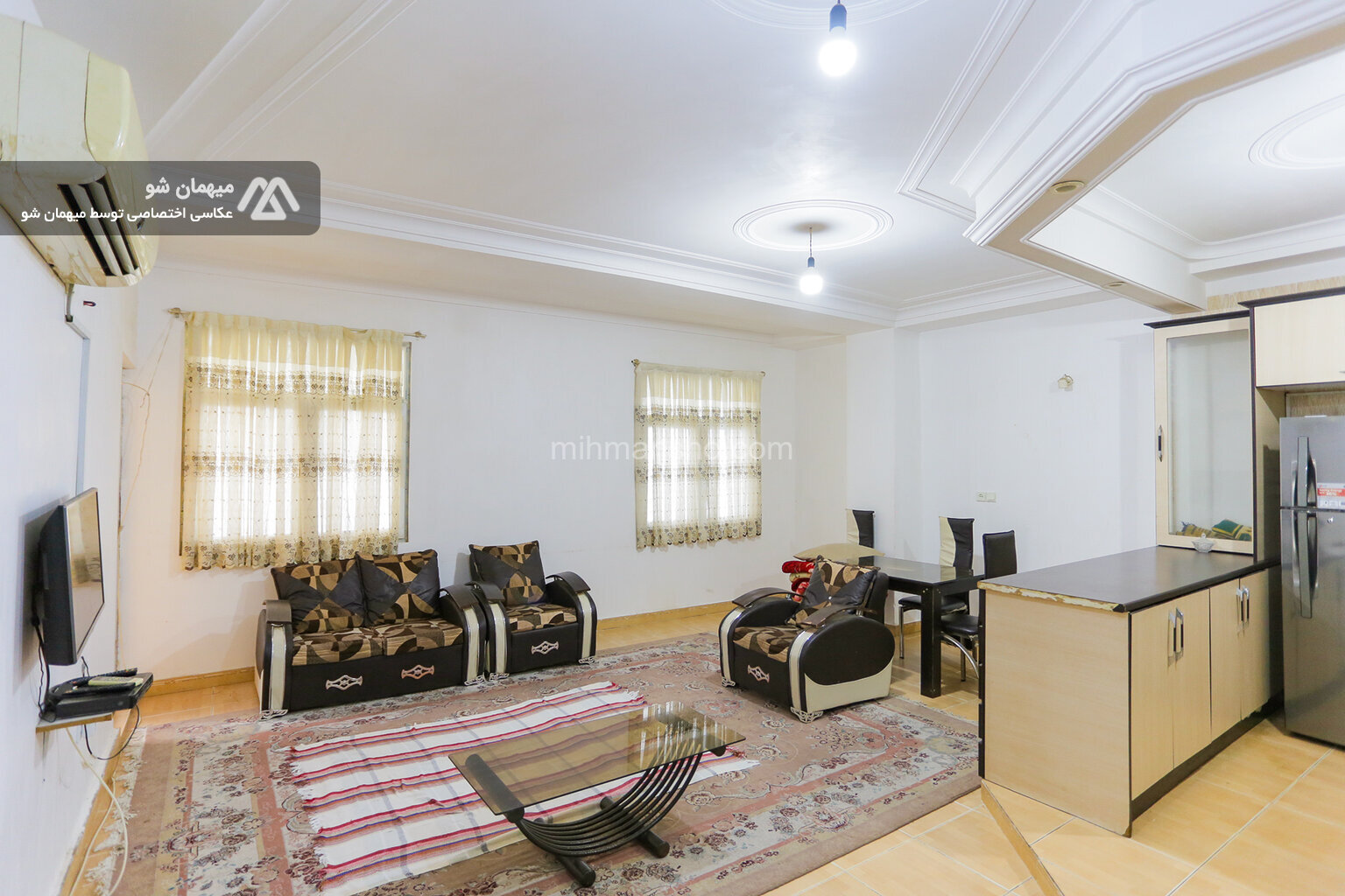 آپارتمان مبله دو خواب با متراژ 100 متر در طبقه اول ساختمان 4 طبقه در محله سام و زال قشم واقع شده است.