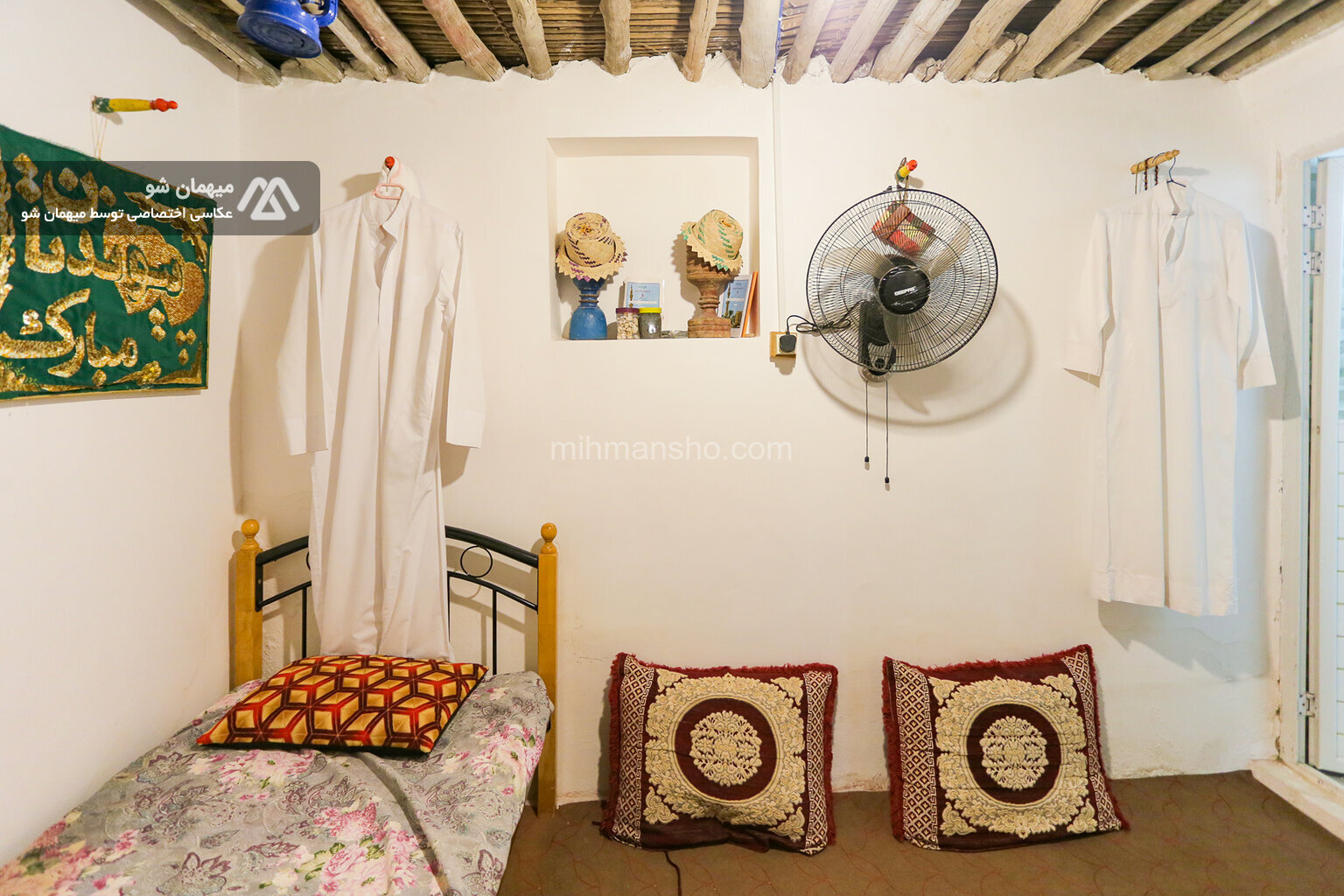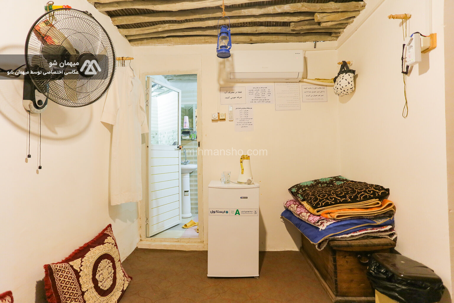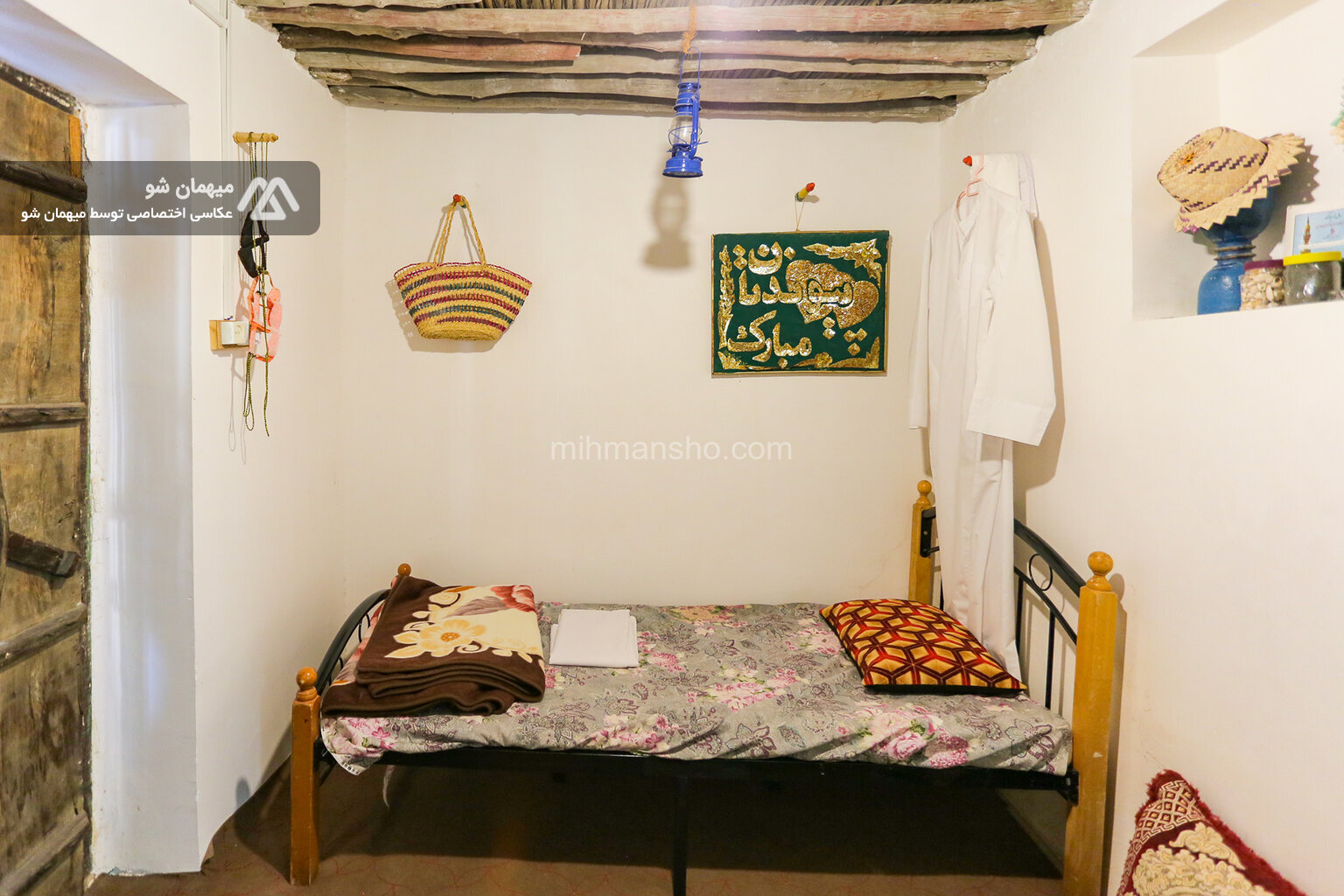 اتاق گل یاسمین با متراژ 6 متری در زمینی به مساحت 500 متر در اقامتگاه بومگردی در محله پاسگاه بندرلافت قرار دارد.