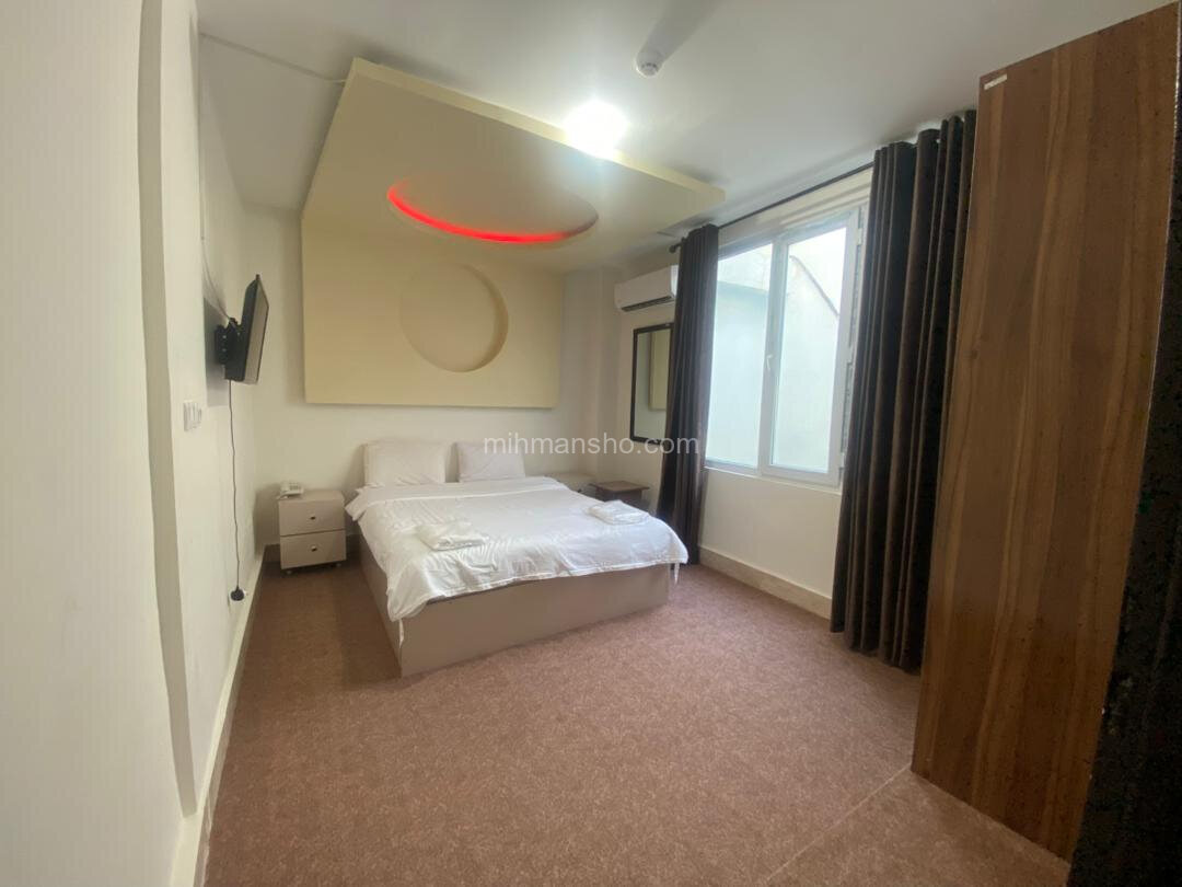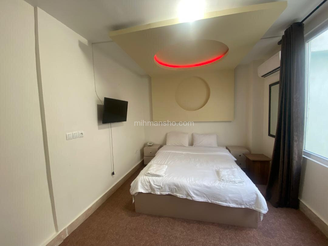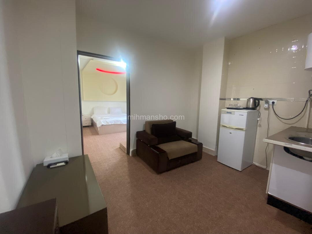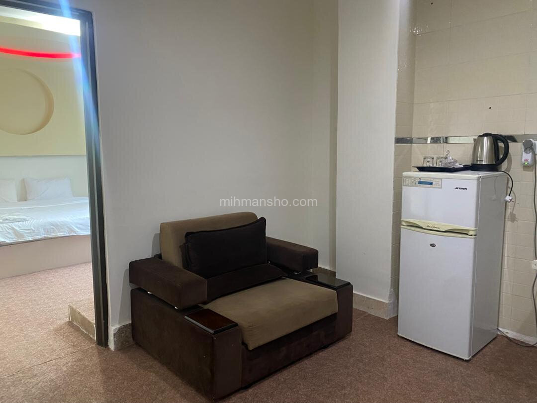 سوئیت مبله با متراژ 40 متر و یک تخت دو نفره درطبقه چهارم هتل 4 طبقه قشم واقع شده است.