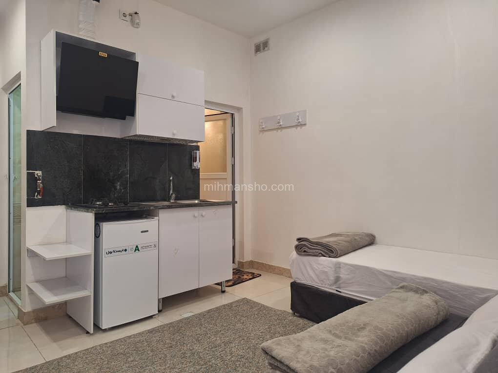 واحد تکخواب مبله با متراژ 45 متر در طبقه دوم ساختمان 5 طبقه 5 واحدی آسانسوردار در هتل مشهد واقع شده است.