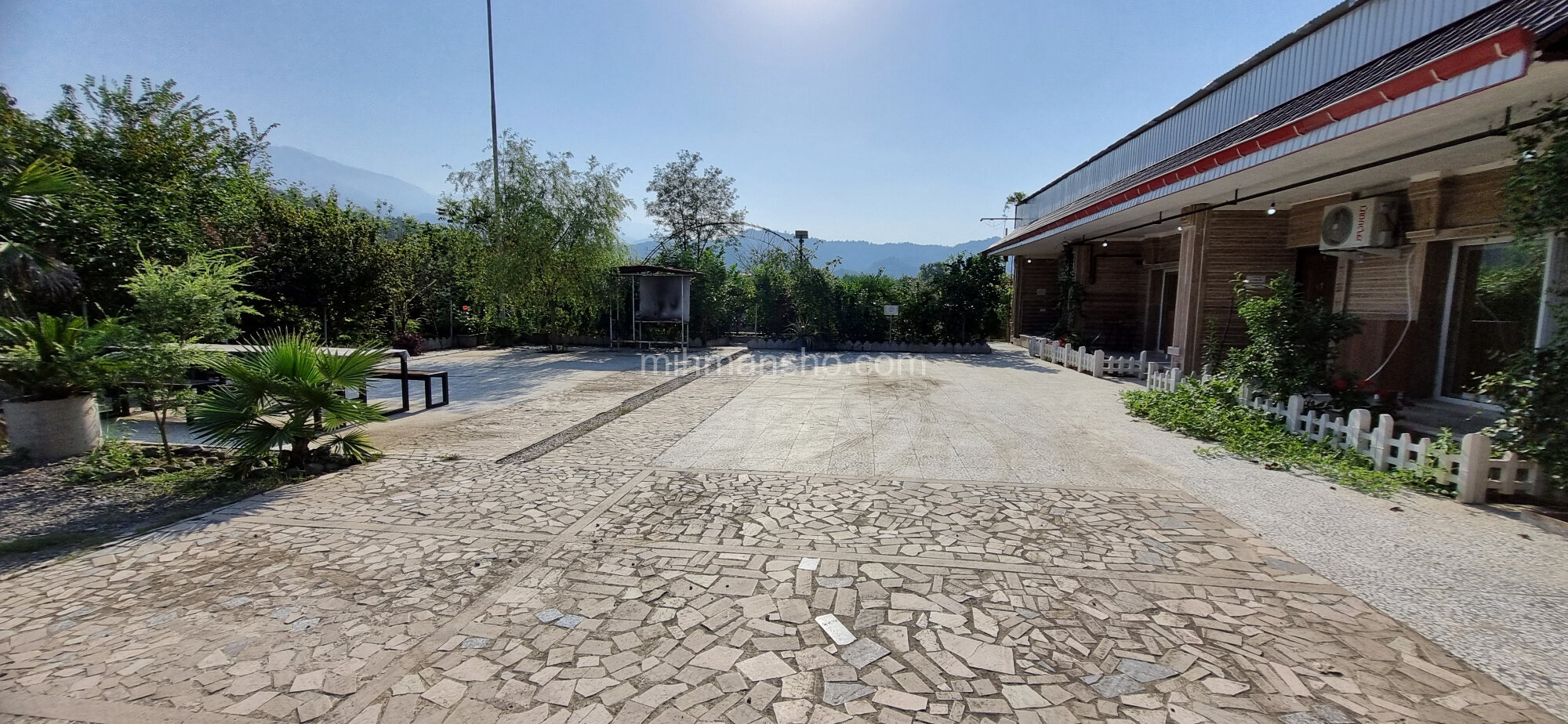 اقامتگاه دارای یک حیاط مشترک 2000 متری بین 6 واحد میباشد.حیاط مشجر و رو به کوهستان و جنگل های زیبای هیرکانی میباشد