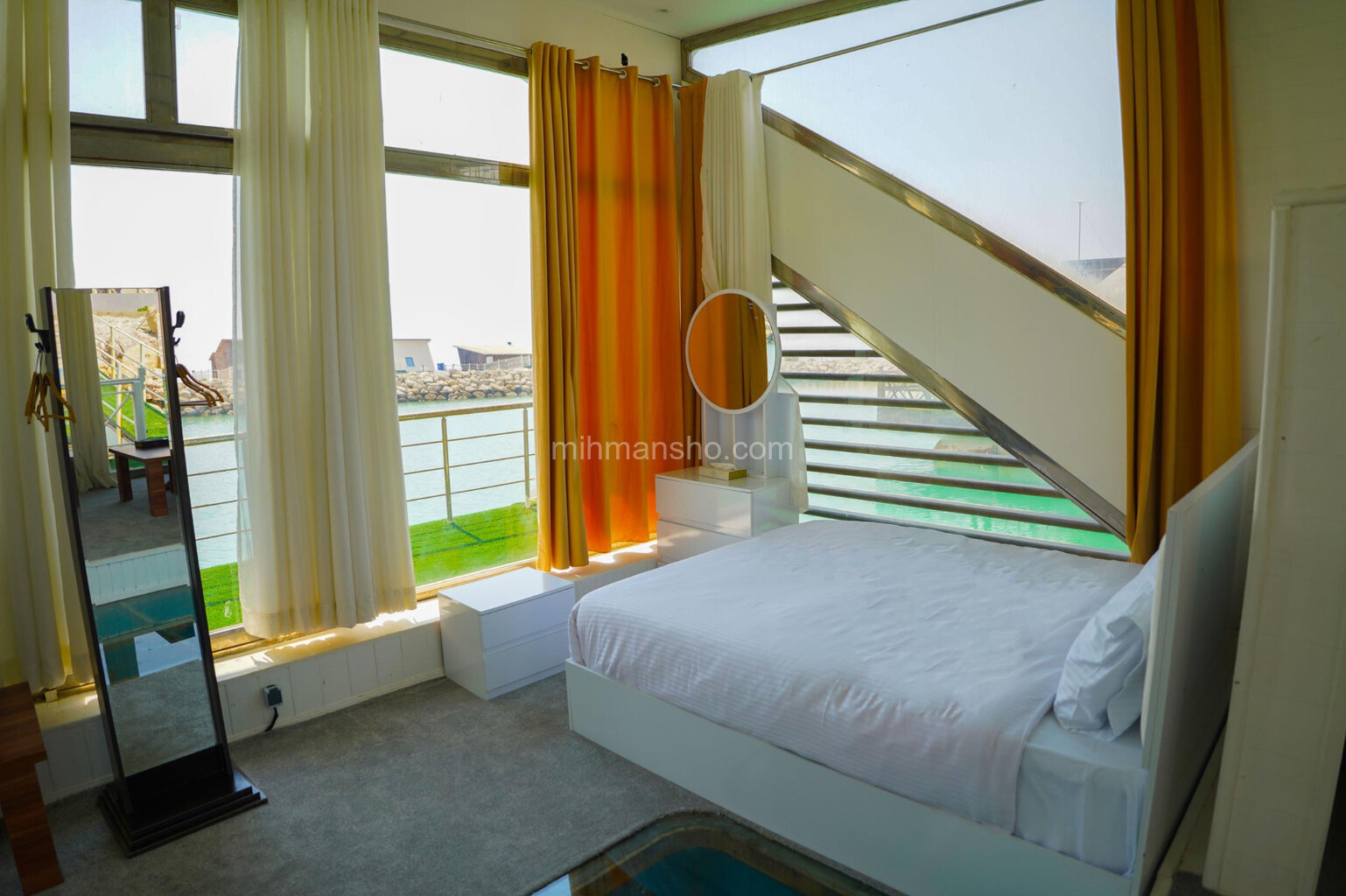 کلبه شناور مبله با متراژ 60 متر در اقامتکاه بومگردی تفریحی در عسلویه واقع شده است.