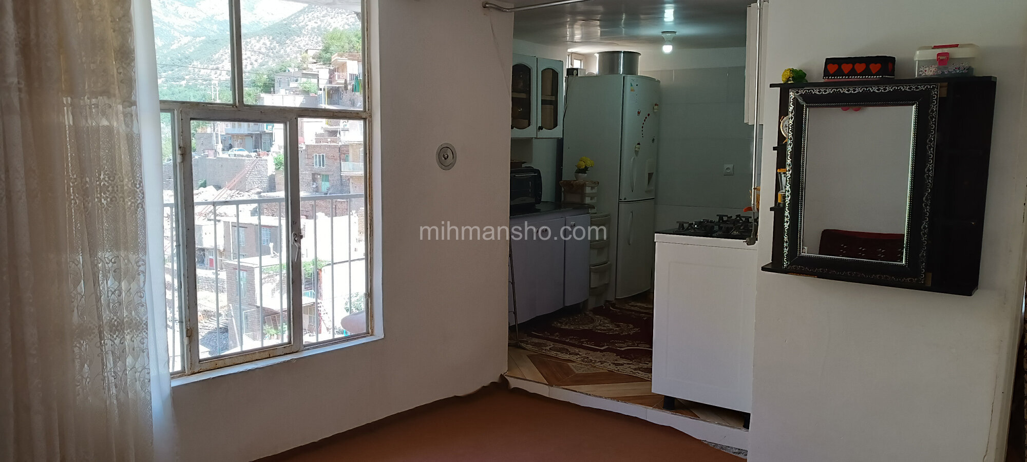 آپارتمان مبله 60 متری در طبقه همکف ساختمان دو طبقه، با نمای سفال سیمان، در روستا داریان شهرستان پاوه کرمانشاه واقع شده است.