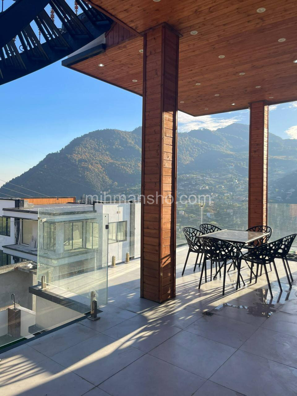 دارای تراس و روف گاردن با چشم انداز به جنگل و شهر و کوهستان می باشد.