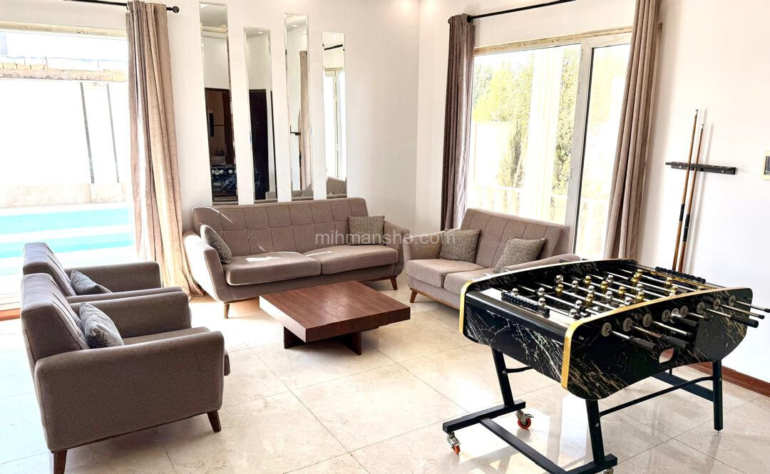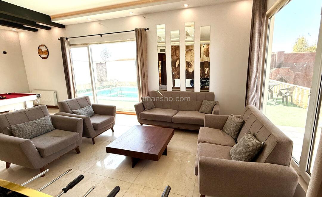 ویلا استخردار مبله تکخواب با متراژ 120 متر در زمینی به مساحت 500 متر در چهارباغ واقع شده است.