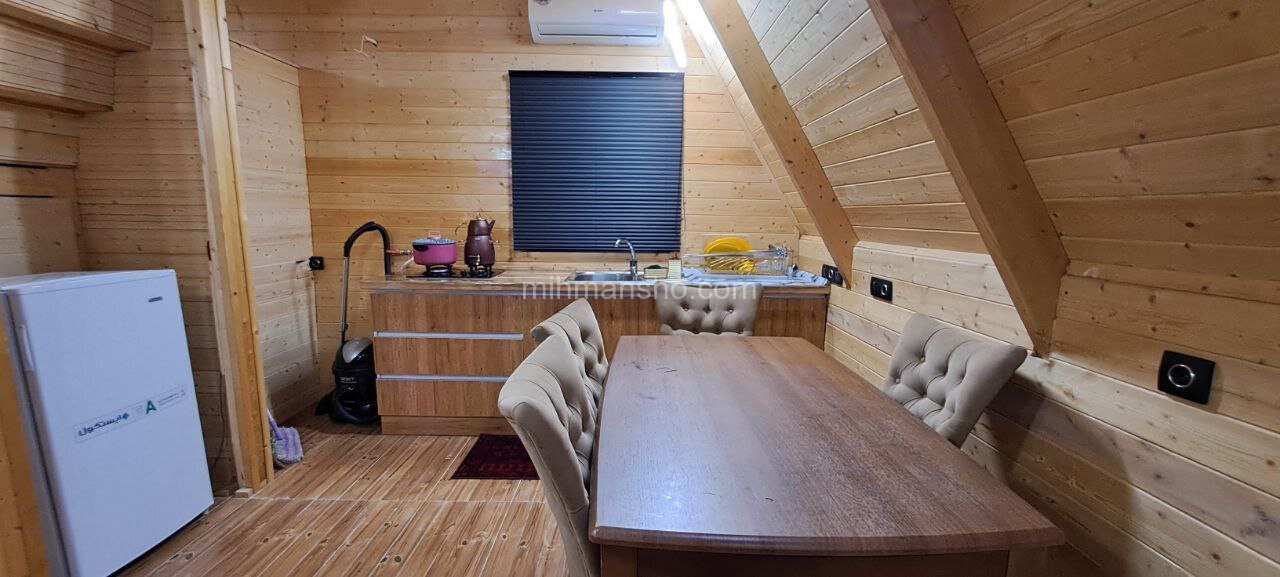 کلبه سوئیسی جکوزی دار مبله تکخواب با متراژ 70 متر در زمینی به مساحت 1000 متر در زیرآب واقع شده است.